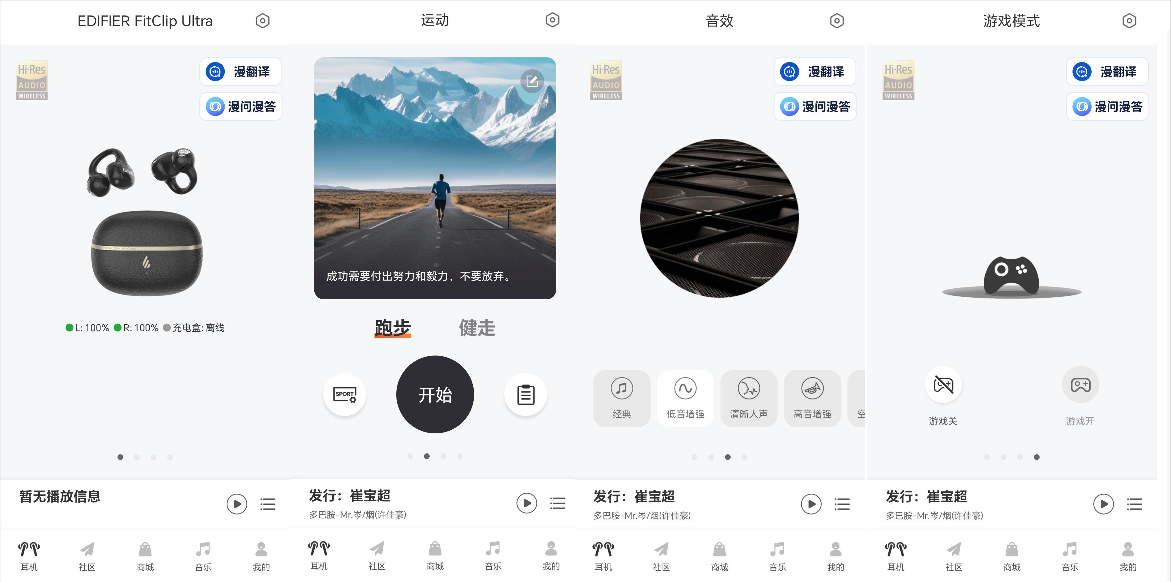 漫步者FitClip Ultra耳夹式蓝牙耳机支持通过官方APP(Edifier Connect)拓展功能,用户可通过扫码下载体验以下功能:耳机查找、运动模式、双设备连接、敲击灵敏度调节、入耳检测、定时关机等。