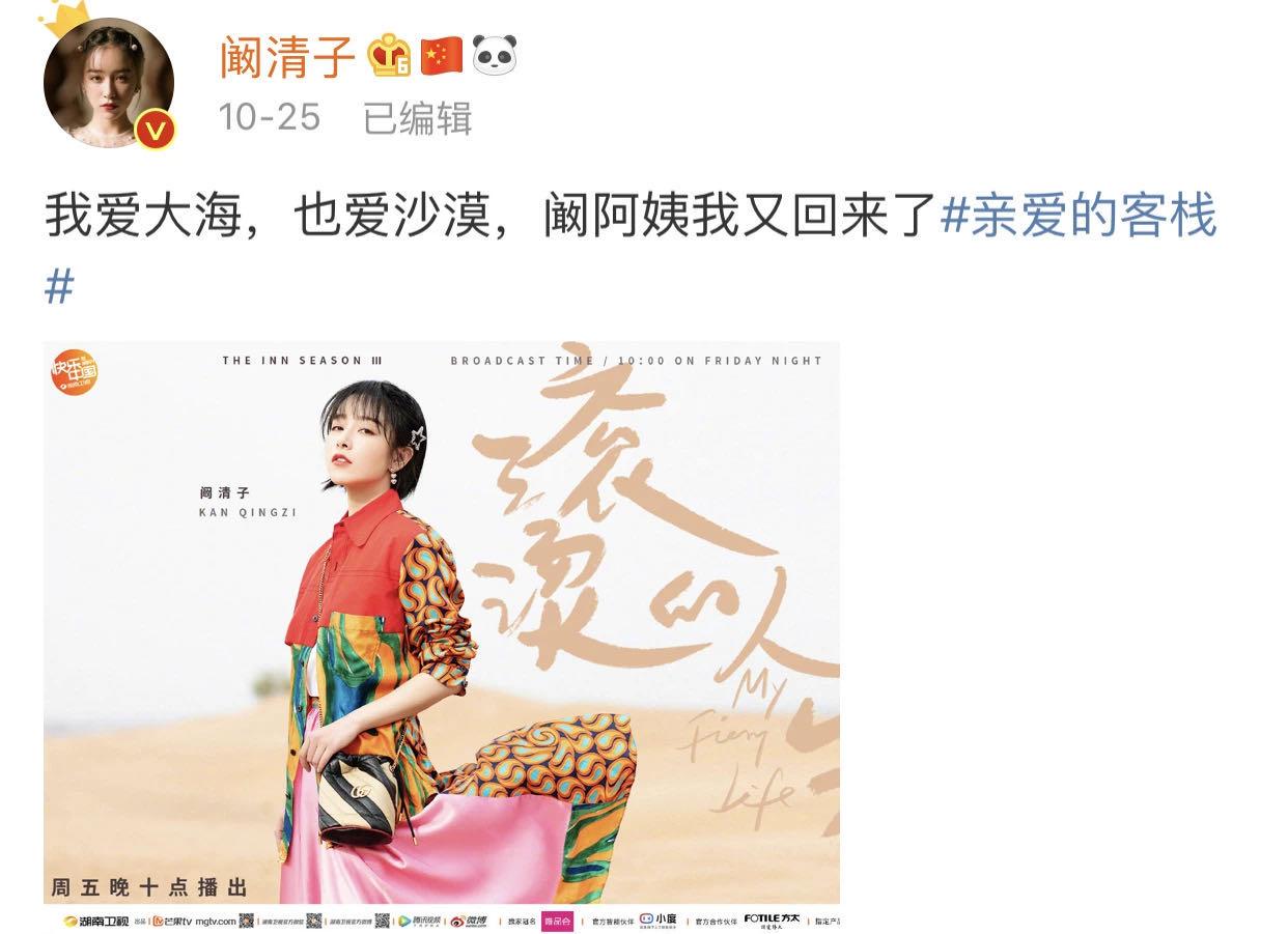 后来她就火了,不过不是因为演的电视剧火,而是因为综艺《亲爱的客栈》,跟比她小六岁的年下男友纪凌尘一起火的。