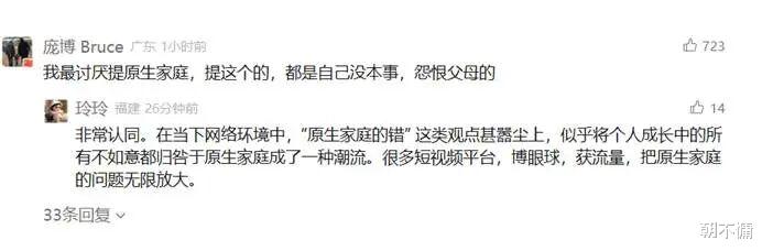我认为这是个人对自己家庭状况的一种描述,读者里面如果恰好有知情的,认为她讲的不客观,指出来那是没毛病的。但不明情况,人家只是语句中包含了“原生家庭”这个词,就像机器人一样触发自动回复,一顿口诛笔伐,那也不合适啊。