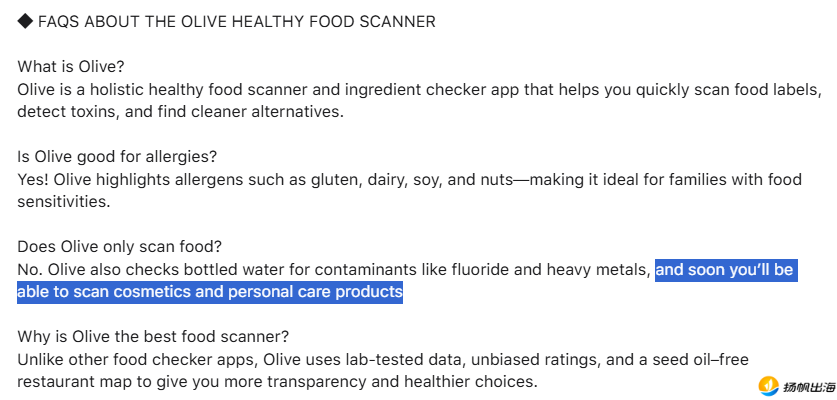 在未来规划中,「Olive」团队明确表示,将扩展检测范围至化妆品与个护产品。这一方向的延展,表示着「Olive」将进一步向「Yuka」的检测模式靠拢,也反映出团队希望通过更完整的健康数据,提升用户粘性与订阅转化。
