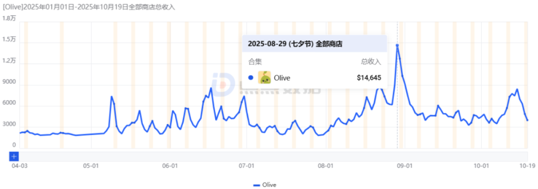 「Olive」上线至10月19日收入曲线变化 来源:点点数据