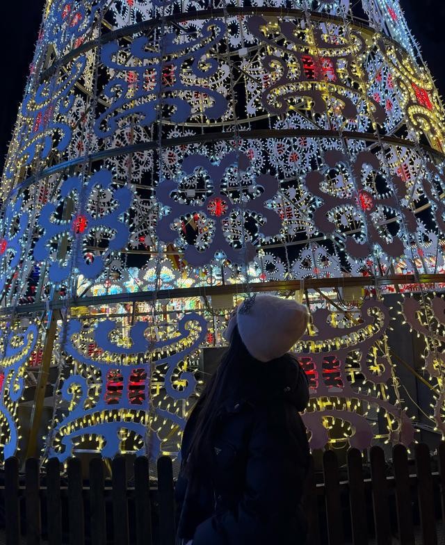 那天晚上的游乐场很吵闹,到处都是霓虹灯和音乐声,她站在人群里,帽子上的水晶蝴蝶反射着周围的光,看起来特别亮,她不用去挤地铁赶着回家,也不用担心明天的早班会不会迟到,她只需要享受这个寒冷但漂亮的夜晚,感受那一刻的快乐。