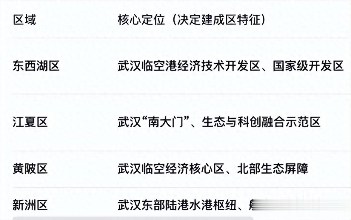 增长动能:东西湖靠产业升级,江夏靠光谷辐射,黄陂靠空港枢纽,新洲靠航天与航运。