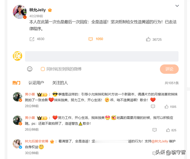 不过,林允方面很快回应,否认怀孕质疑:本人在此第一次也是最后一次回应:全是造谣!坚决抵制给女性造黄谣的行为!已走法律程序。