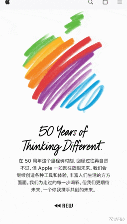 用 iPhone 打开苹果官网的话,点击底部的「REW」,还会播放一段苹果产品的回顾视频。