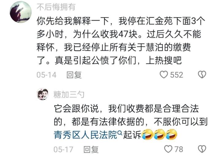 这次慧泊能上热搜,是南宁老百姓长期积累怨气的爆发。给车友开巨额停车费账单,加上和法院的合作,这都是不为老百姓着想的做法。