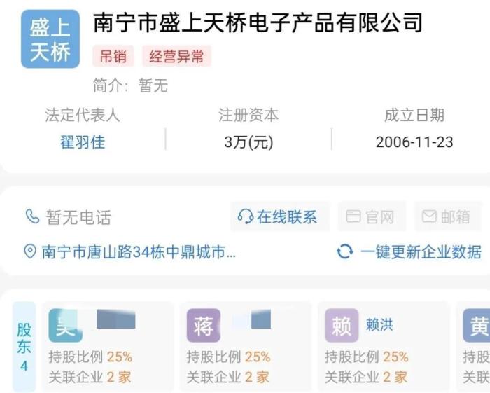赖洪赖洪,曾是南宁市盛上天桥电子产品有限公司的股东,持股25%。看这公司的名字就像是搞交通电子的公司,2006成立2016年注销。