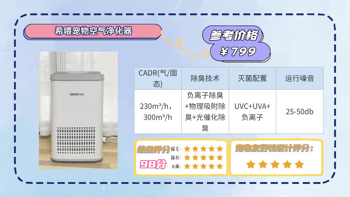 整体来看,希喂 FreAir Lite 在浮毛吸附力、气味分解能力、灭菌效率、空气恢复速度与认证体系上的综合实力,已经达到甚至超过部分千元级宠物空气净化器。而它的价格仍维持在更可接受的区间,可谓是目前宠物家庭中“同价位最稳妥、综合体验最完整”的选择之一。