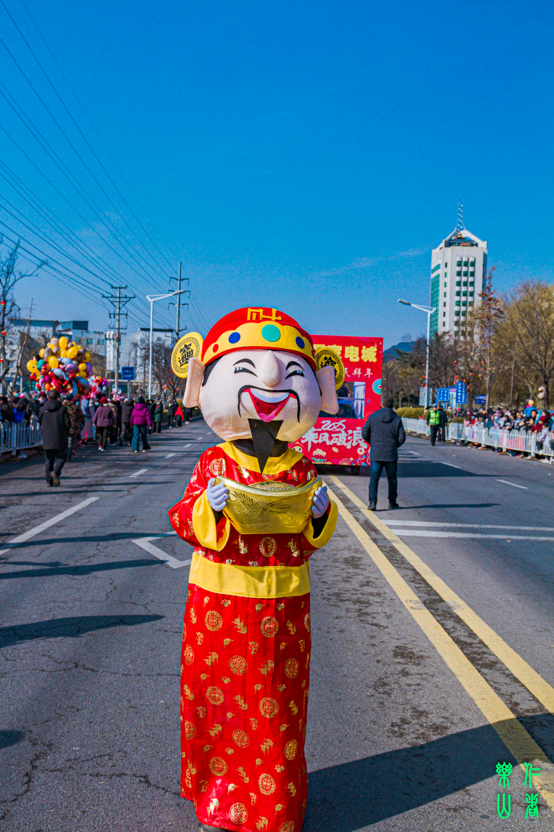 还有一个胖墩墩的男孩,着一身金黄金黄的大师兄——行者悟空行头,也许受《黑神话悟空》的启发,这娃儿气宇轩昂、虎步龙行、披靡四海的模样……俺启发他道:“大师兄,快到中线上把金箍狼牙棒神舞起来!”,小行者一听立马来了精神,一个箭步就金鸡独立在马路中央双实线上,双手将金箍棒舞动的如风车般上下翻飞起来……俺给他拍片美其名曰:“俺小老孙来也!”