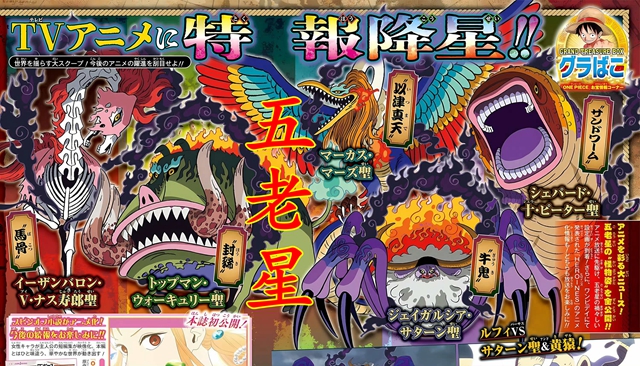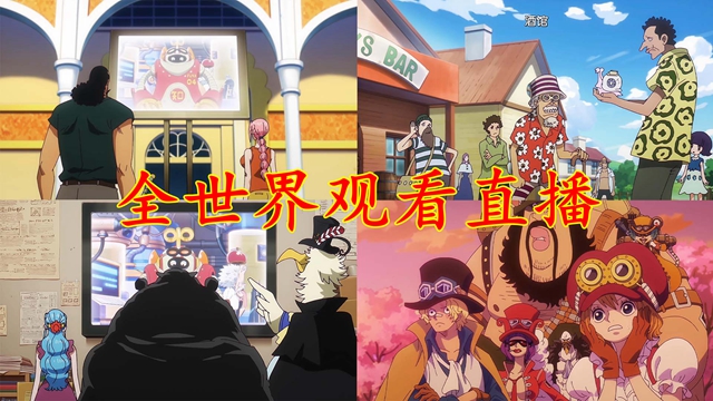 海贼王动画1143集,贝加庞克的死亡,触发了事先设置的程序,强制征召海军的所有电话虫,向全世界发送直播。这里展现了世界各个地方,路飞故乡风车村、七水之都、德雷斯罗萨、老贝的故乡、革命军的新总部、玛丽乔亚、新闻王都在观看直播。
