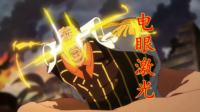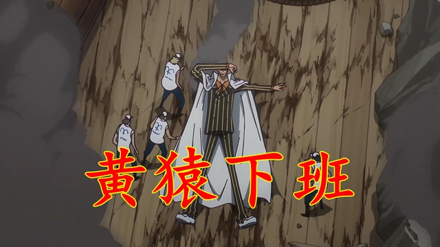 路飞躲开了黄猿和萨坦圣的突然袭击,随后使用了技能“橡胶·白色台钳”,把黄猿和萨坦圣拍成了制片人,随后通过转手绢的方式,将两人远远扔了出去。黄猿撞上军舰,就此躺地不起。不得不杀死好友的任务,让黄猿内心极其动摇。