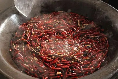 4、放入泡好的辣椒,切块的牛肉(我们放的是熬牛油出来的油梭子)小火熬制20分钟等水分干即可。5、放入孜然粉、胡椒粉、鸡精、味精、白糖、盐。