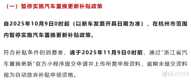 只不过到这,其实大家主要动的都是置换补贴,报废补贴基本是没啥影响的。像杭州就说了,报废补贴的标准、流程都按原政策执行,只是加了报废车得是杭州车牌的限制。