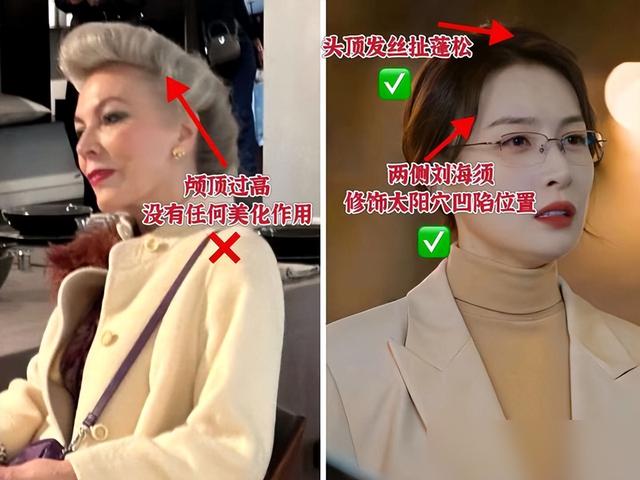 太长的头发贴头皮,会和面部老态形成对比,显沉闷;短发别超耳朵,否则像男士寸头。