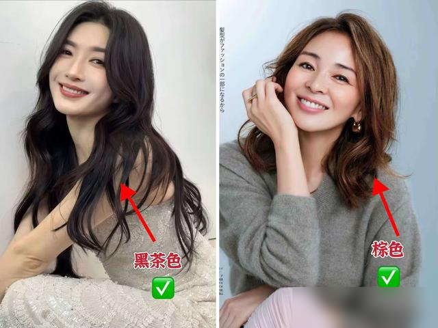 发色选自然的黑茶色、暖棕,比夸张的潮色更衬肤色,还能和日常穿搭无缝衔接。