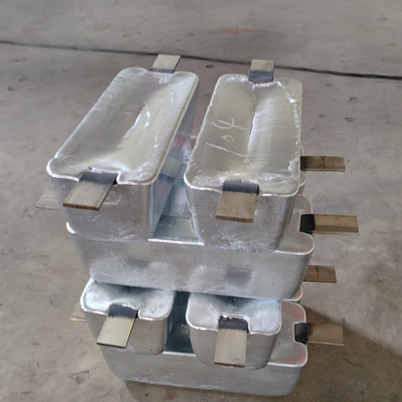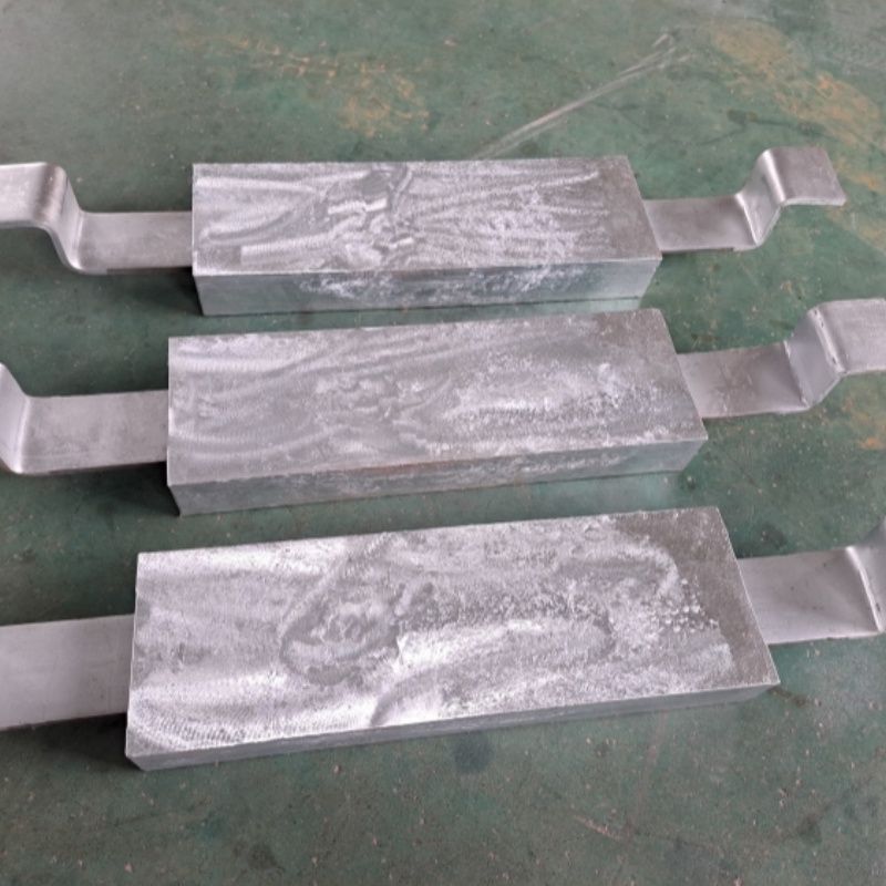 工作原理:铝阳极块的电极电位为 - 1.05V 至 - 1.25V,显著低于钢铁等被保护金属(通常为 - 0.5V 至 - 0.8V)。当铝阳极块与船体或储罐通过导线或直接接触连接,并置于海水等电解质环境中时,会形成闭合原电池回路。铝作为阳极优先发生氧化反应,释放电子并逐渐溶解,电子流向被保护金属,使其电位降低至免蚀区,抑制腐蚀反应。