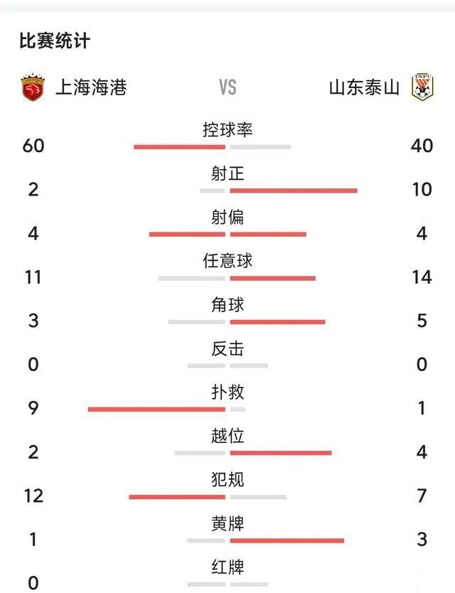 最终这场比赛上港60%的控球率山东泰山40%的控球率,这和泰山队防守反击打法有关系。