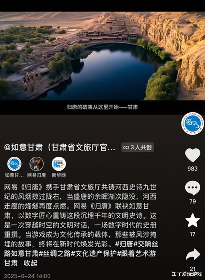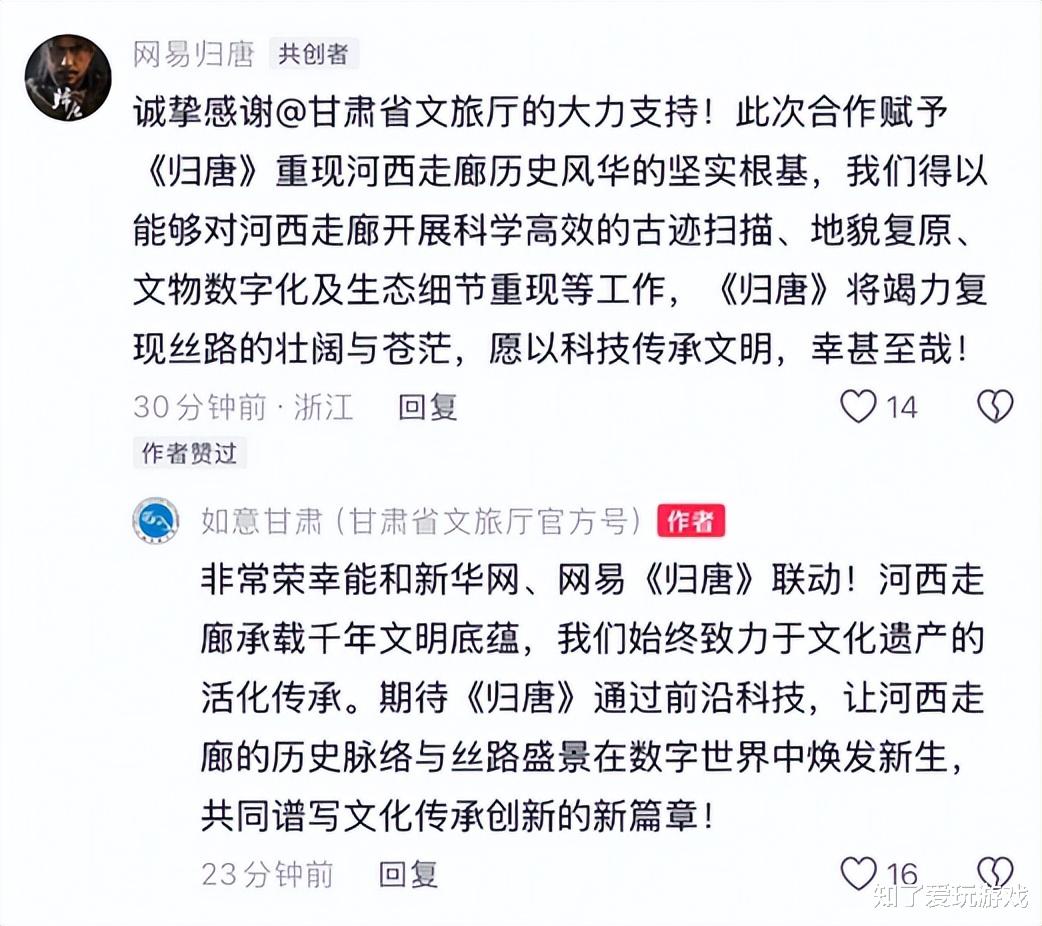 对于此次合作,《归唐》官方称将会运用古迹扫描、地貌复原等科学高效的技术重现丝路的壮阔,以科技传承文明,言语之中无不展现出《归唐》制作团队的真诚,或许也正是因为游戏制作团队对于历史文化的思考、展现出的对文化传承的决心,才打动了玩家们与甘肃文旅厅。