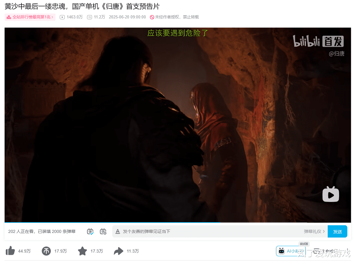 其实《归唐》的背景与工作室实力是毋庸置疑的,网易是国内的游戏大厂,旗下的临安24th工作室一直以来对游戏质量也都保持着高追求,制作时严格对标欧美一线大厂作品。所以《归唐》的质量和技术可以说绝对不会差!而《归唐》的第一支预告片的成功,就是其实力的最好证明。要知道,《归唐》首支预告片在发布后的24小时内,就于B站取得了1000万次的播放量,评论和点赞数也居高不下,甚至在抖音快手等其他短视频平台上,这只PV也收获了超过2000万次的总播放量!