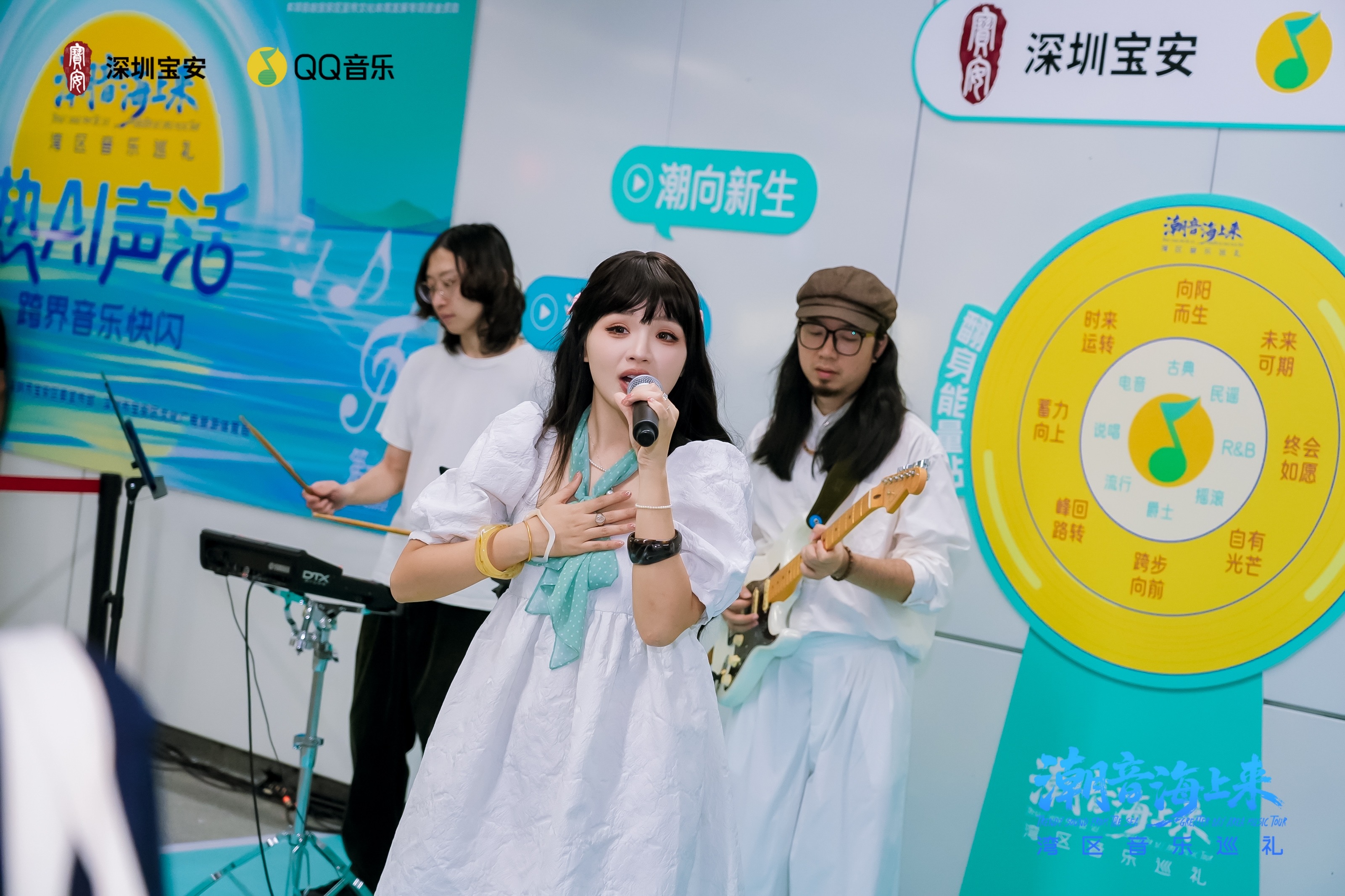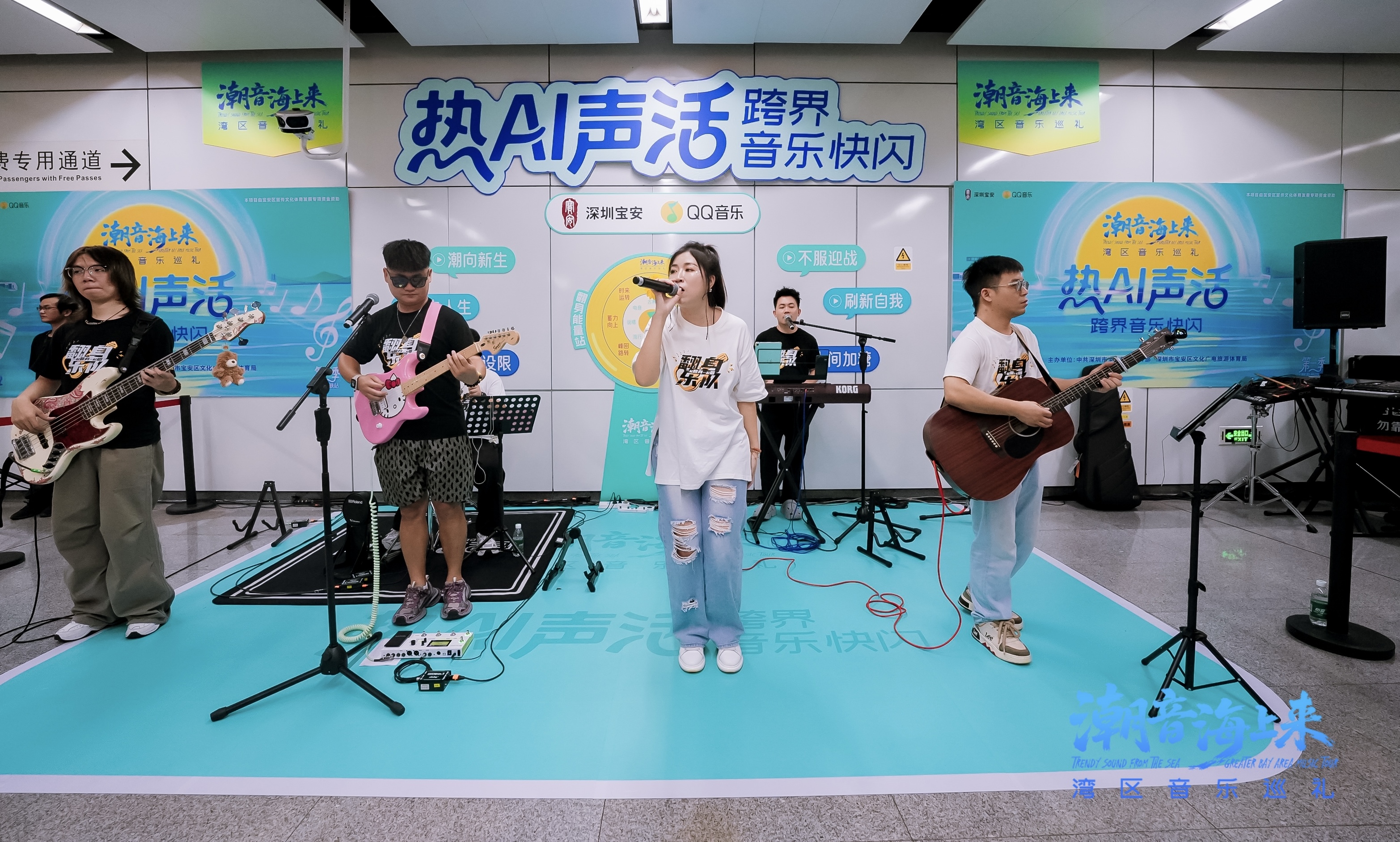 9月12日上午,潮音海上来“热AI声活”跨界音乐快闪,在宝安区翻身地铁站站厅内活力上演。