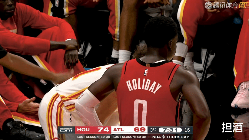 场上火箭球员虽然是板凳末端,但是能量十足,手握十分以上领先,这比赛应该拿下了。