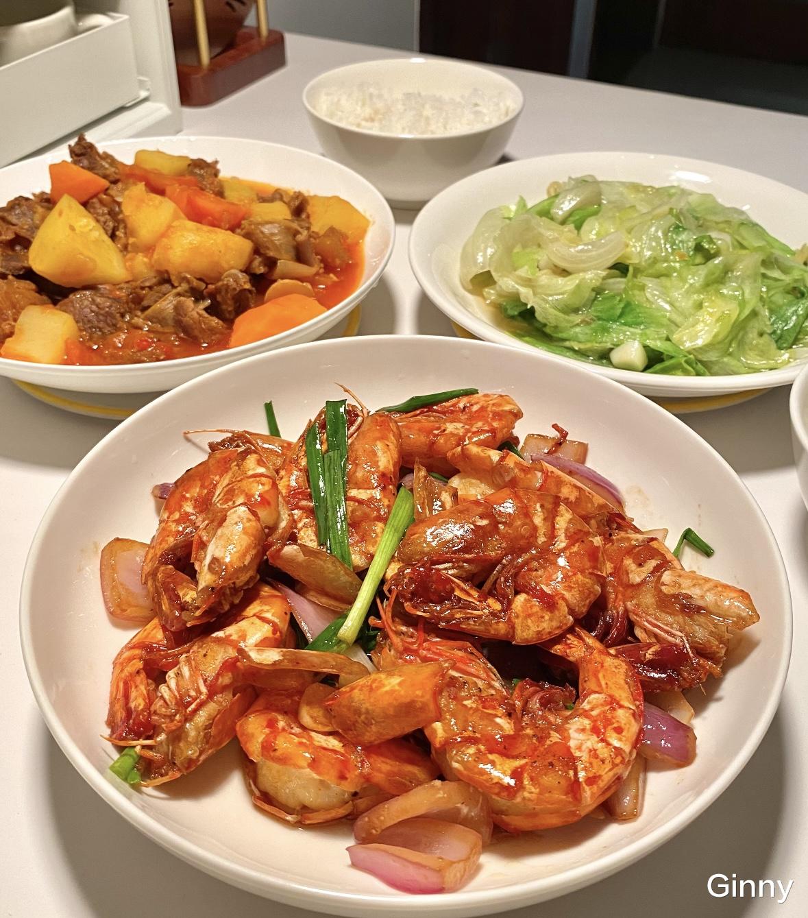 好久没试过炒虾了,简直香迷糊了,肉质紧实,虾壳咸香,连洋葱都脆甜脆甜的,有点铁板里的配菜的感觉。