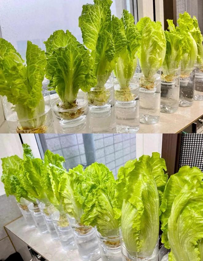 人家没买任何专业东西,就用最普通的矿泉水瓶,前后成功种出了8棵水灵灵的生菜。
