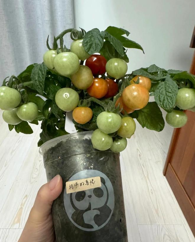 再说口味,不是只能种不好吃的品种,矮生番茄果肉厚实,酸甜度适中,但是皮会厚一些。