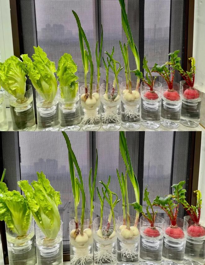 同理还可以种点蒜苗和水萝卜,搭配起来看着心情好好。
