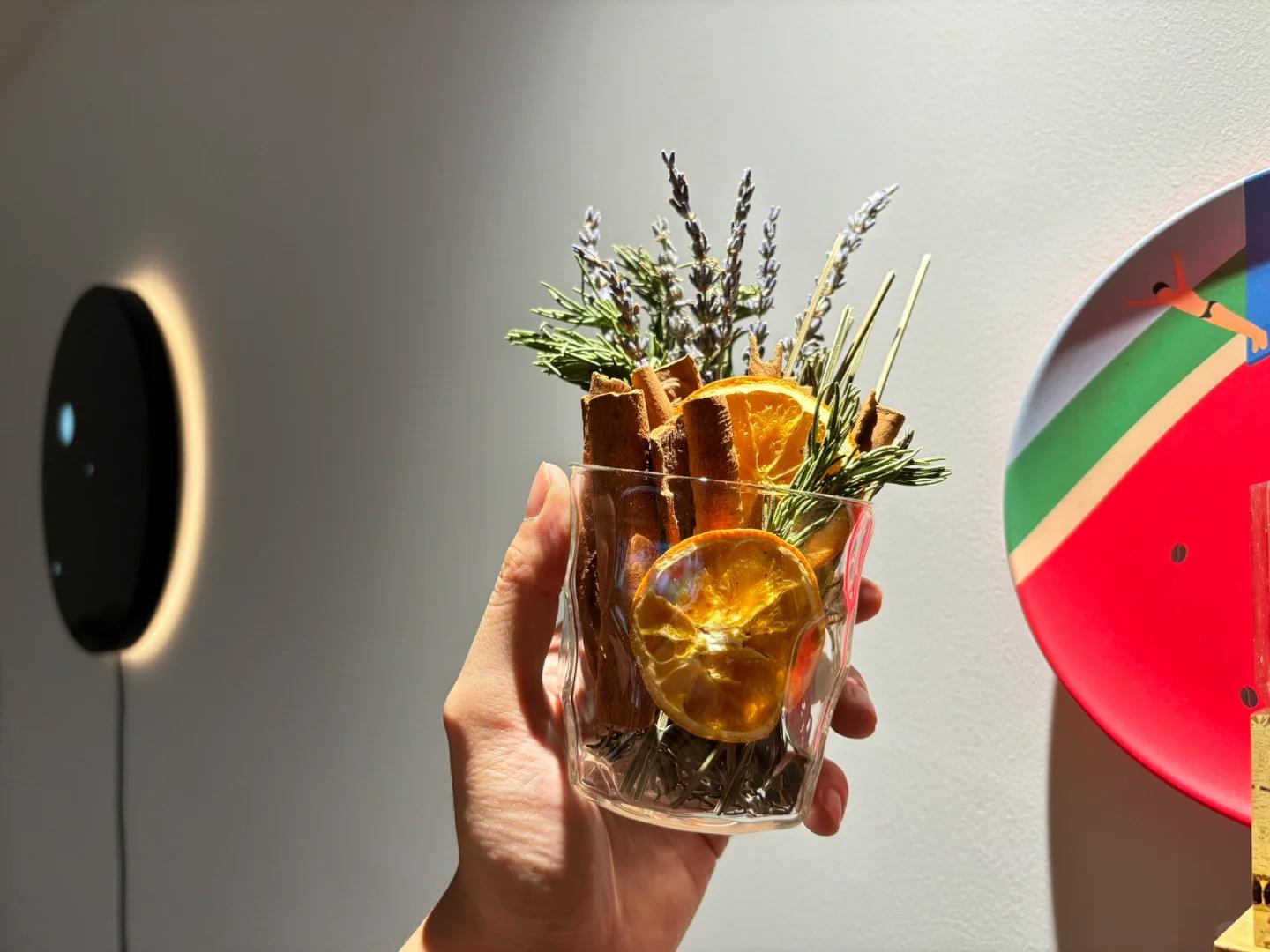 我还用闲置杯子做了个天然香薰杯,放上草杖、肉桂、薰衣草、柠檬片,晚上放床头很安神。