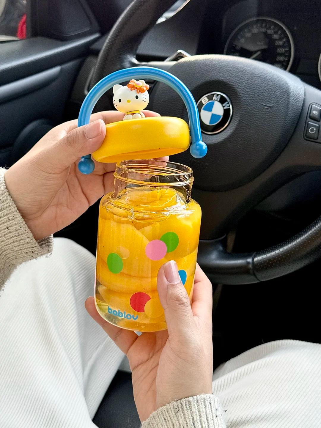 后来我就用闲置水杯装水果,切块的也没问题,再也不用担心水果被挤碎了。