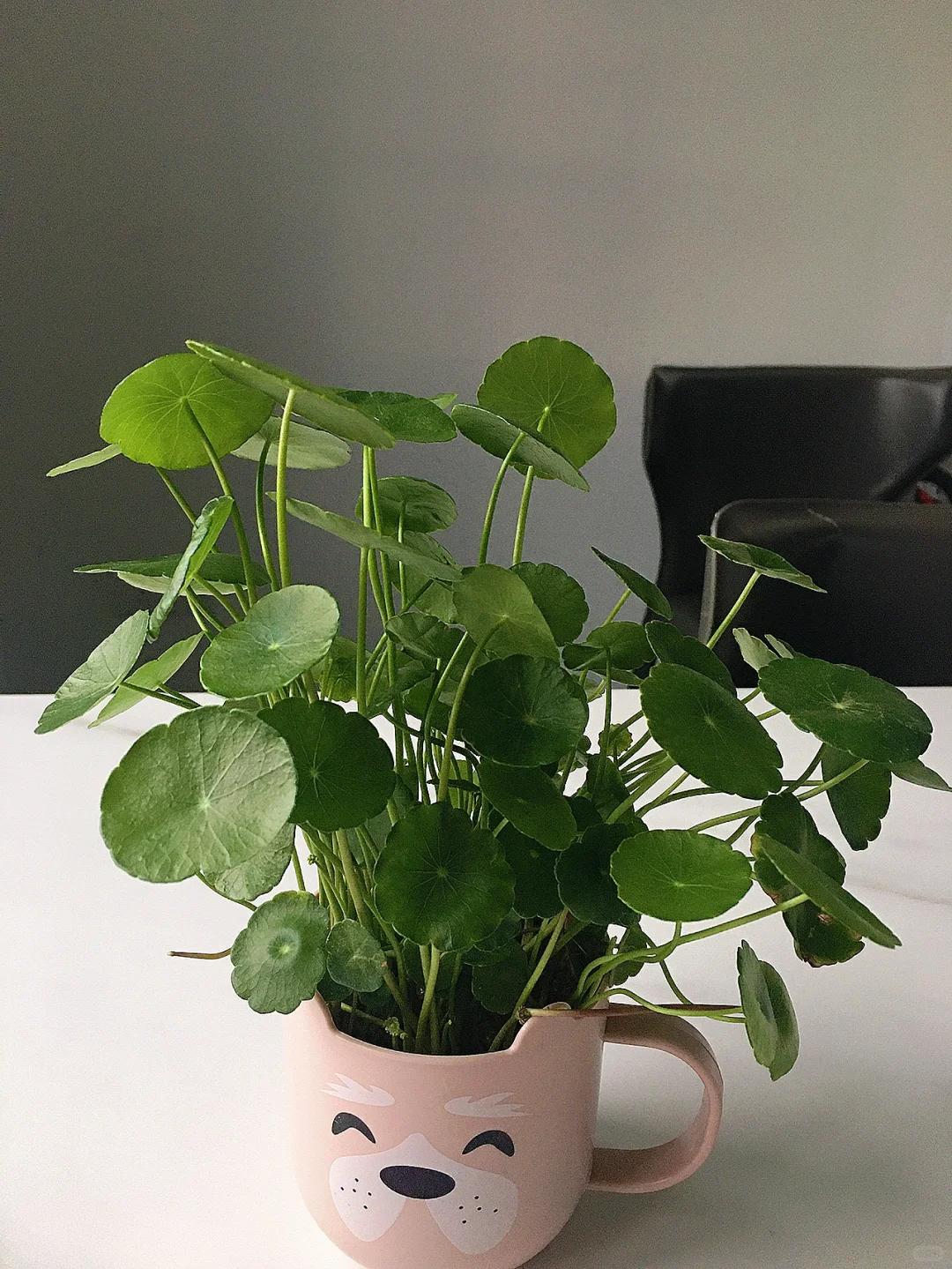 4.种花养鱼闲置的水杯拿来种铜钱草,一半水一半土就行,长势喜人。