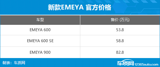 动力方面,ELETR E600和600SE车型的最大动力为450kW/710N·m,900车型为675kW/985N·m,0-100km/h加速时间分别为4.5秒和2.95秒;EMEYA 600和600 SE的最大输出为450kW/710N·m,EMEYA 900为675kW/985N·m,0-100km/h加速时间分别为4.15s和2.78s。