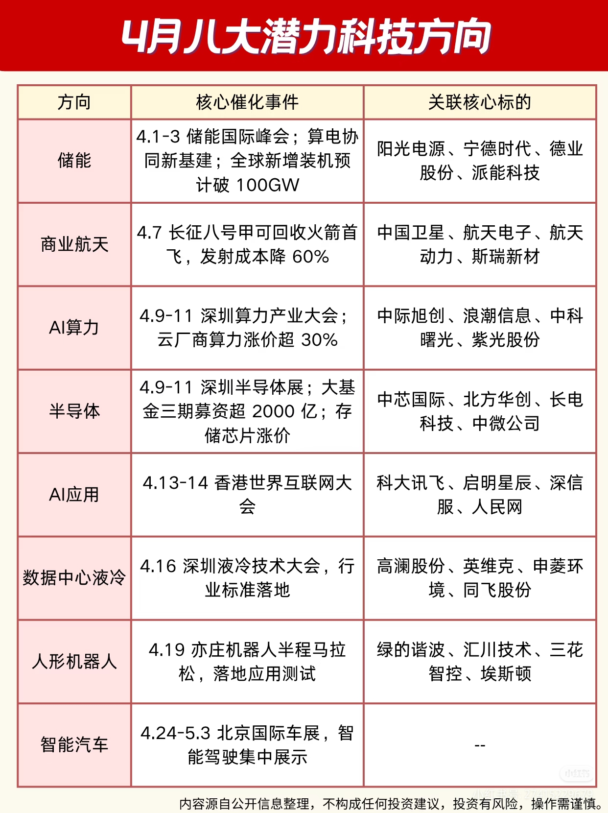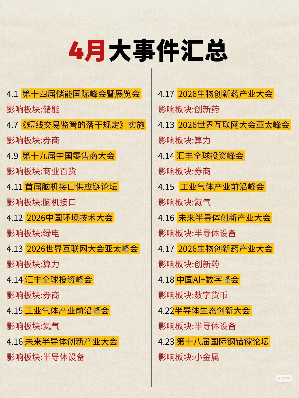 另外,4月是全年行情的关键窗口,政策催化、产业会议密集落地 。这些科技事件值得重点关注:深圳算力大会、首届脑机接口论坛、世界互联网大会、AI数字峰会~……