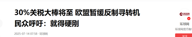 环球网——30%关税大棒将至 欧盟暂缓反制寻转机 民众呼吁:就得硬刚——2025-07-14
