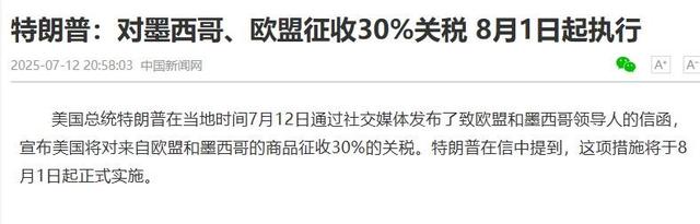 这一轮30%关税的风暴,不只是对贸易的考验,更是一场全球经济秩序重构的序幕。
