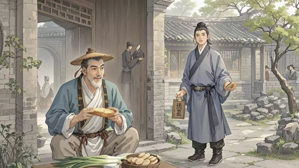 村里有一户人家,母子俩相依为命,穷得那叫一个叮当响。这小子名叫王二愣,他娘叫李英。有一天,王二愣正坐在自家门口的石头墩子上,一手攥着个玉米饼子,一手拿着根大葱,吃得那是津津有味。