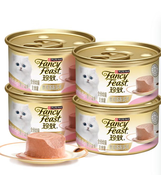 适口性好性价比高的品牌测评:珍致是美国普瑞纳旗下的高端宠物食品品牌,首先开创了“一餐一罐”的猫粮新概念,其85 g一罐的规格设定带来突破性的产品体验,而后在全球范围内推广开来,帮品牌打响了知名度。他家主食罐有丝滑慕斯和烧汁两个系列,共有5种口味,即鸭肉、三文鱼、鸡肉、虹鳟鱼和虾、比目鱼;鸭肉味是幼猫主食罐头独有的,但幼猫主食罐没有虹鳟鱼和虾、比目鱼两种口味。配料表第一位原料是肉类及其制品,并没有说明具体是什么,而且罐头中还含有人工胶质(瓜尔胶)。