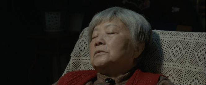 电影《大雪冬至》以静默的镜头语言,讲述了一位独居老人魏大雪生命最后时光的故事。影片结尾,魏大雪蜷缩在摇椅中,老式台灯闪烁不定,电视机里循环播放着《动物世界》赵忠祥先生熟悉的解说,这看似平静的画面背后,实则隐藏着老人与亡夫跨越时空的无声对话。长达三分钟的空镜头,飘雪的胡同、熄灭的炉火、静止的摇椅,无声地暗示着这位被子女遗忘的老人,在冬至的夜晚,最终与三十年前去世的丈夫“重逢”。影片运用暖色调的画面包裹着残酷的现实,营造出一种独特的叙事张力。