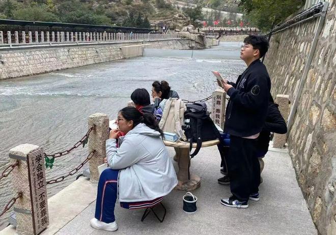 在这份震撼中,大家纷纷寻找绘画的最佳位置,或是去打水,或是支上马扎,打开颜料盒的清脆响声,与潺潺的江水相得益彰。用手中的颜料与画笔,将眼前所见之光景,誊录于纸上。