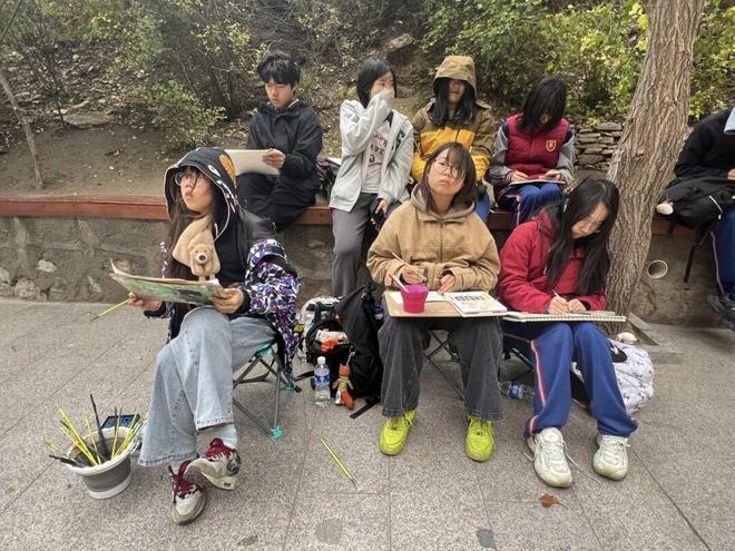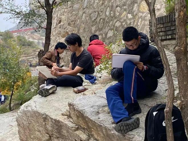 秋风萧瑟,落叶飘零,山间寒风直入骨髓,是对美术的热爱和对自我的严格要求,让每一个同学都坚持下来,全心投入到艺术创作之中。