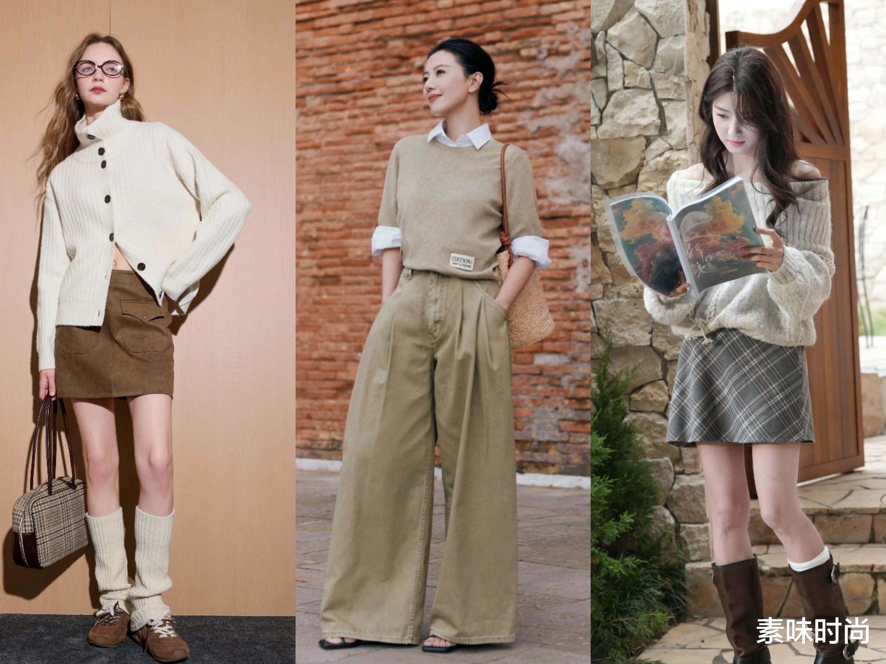 基础色(燕麦/黑/白)万能不出错,想吸睛可试“低饱和撞色”(如浅蓝毛衣+浅黄半裙),避免大面积亮色显厚重。