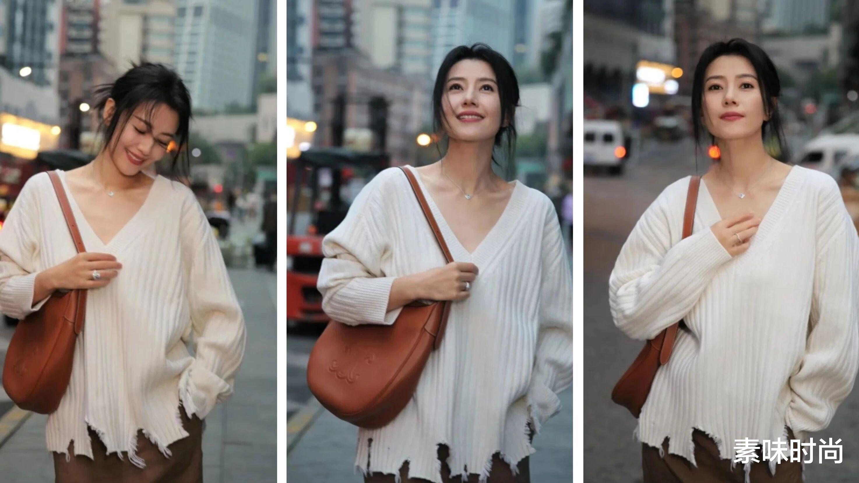 毛衣选“微修身”款,避免垮塌;外搭一件同色系薄款西装,手拎简约托特包,温柔又专业。