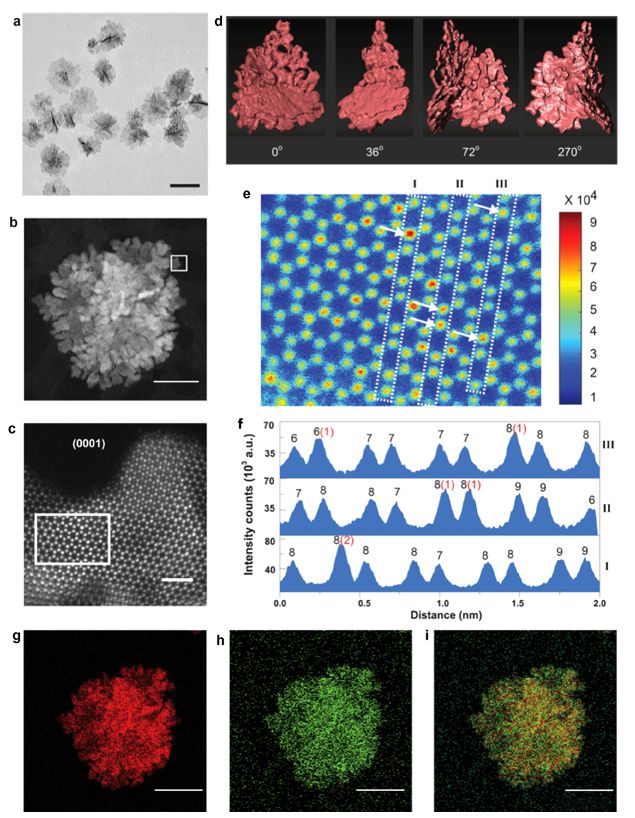 DOI:10.1016/j.jechem.2022.04.015各向异性结构的优势与特点各向异性结构的最大优势在于可实现性能的定向优化和精准调控。由于材料在不同方向上具有不同的活性位点、表面能、缺陷浓度和电子结构,研究者可以通过合成控制特定方向的结构特征,从而提升催化效率。例如,特定晶面上活性原子的高密度分布,可以大幅度增加反应物的吸附和活化能力一维或二维结构有利于反应物和产物的快速扩散与分离。此外,各向异性结构常常展现出独特的电子迁移行为和应变调节效应,有助于提升整体催化活性和稳定性。各向异性对催化活性的影响各向异性对催化活性的提升主要体现在三个方面:第一,暴露高活性晶面能增强反应物的吸附和中间体的稳定,从而降低反应势垒。例如,以Wu等人发表于Nature Communications(2021)的一项工作为例,研究者通过合成具有高度各向异性结构的Ru-Ir纳米珊瑚(RuIr-NC)催化剂,实现了酸性条件下高效且稳定的整体电解水催化。该催化剂由厚度仅约3纳米的二维纳米片自组装形成珊瑚状结构,显著暴露出大量{0001}高指数晶面。与常规球形纳米颗粒相比,这种各向异性纳米片不仅极大提升了单位质量和表面积的催化活性,而且表现出极为优异的稳定性。具体表现为,在相同电流密度下,RuIr-NC催化剂只需165mV的过电位即可驱动10mAcm⁻²的氧析出反应(OER),远优于球形Ru-Ir纳米颗粒和商用IrO₂催化剂。此外,原位谱学和高分辨电镜研究揭示,珊瑚状的各向异性结构能够有效抑制金属溶解和无序氧化物的生成,保障催化剂长期高活性和结构稳定。