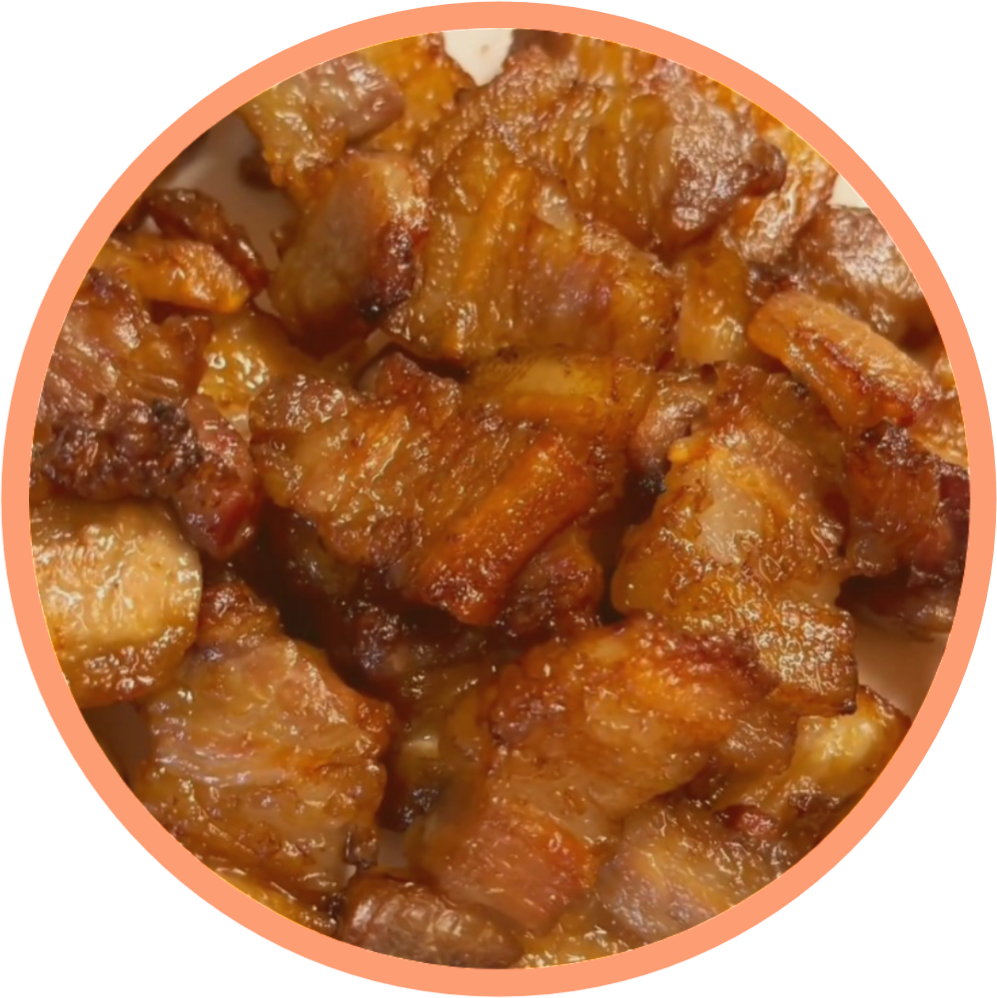 做法:五花肉切厚片,加生抽、料酒、蒜粉、黑胡椒、辣椒粉、孜然粉腌制半小时,空气炸锅200℃烤20分钟,中途要翻面。