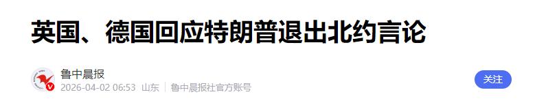 鲁中晨报《英国、德国回应特朗普退出北约言论》