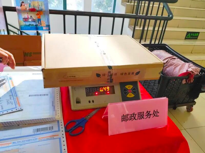 下图:「南外滩轻纺面料市场」内的黄浦邮政核对地址、称重计费、打印面单,整个流程仅用5分钟(图源:公众号上海黄浦)