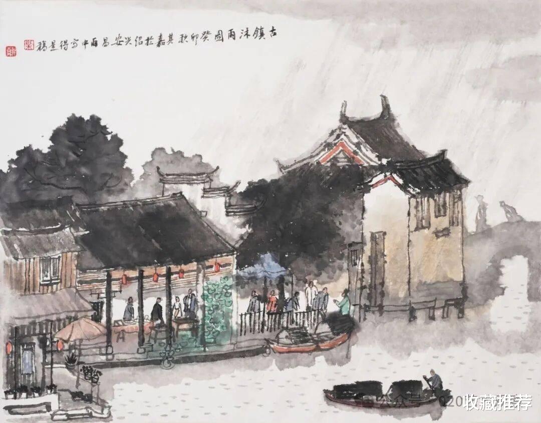 古镇沐雨图
