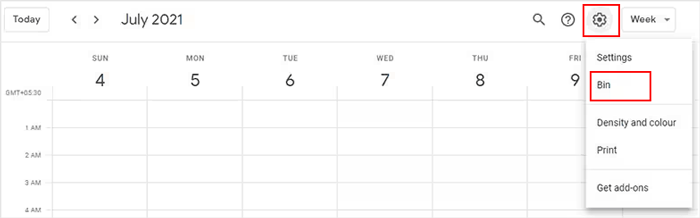 步骤 3. 点击“设置”图标,然后单击“Bin” ;您将看到最近删除的事件列表。