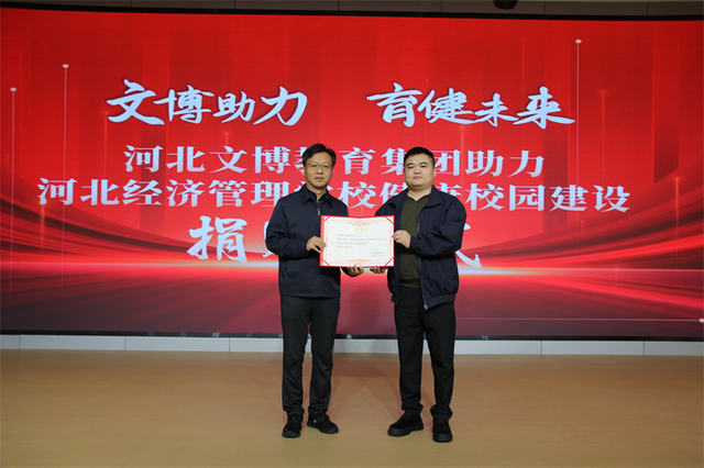 随后,河北文博教育科技集团与河北经济管理学校进行了捐赠交接,校方向企业颁发了捐赠证书,以表谢忱。